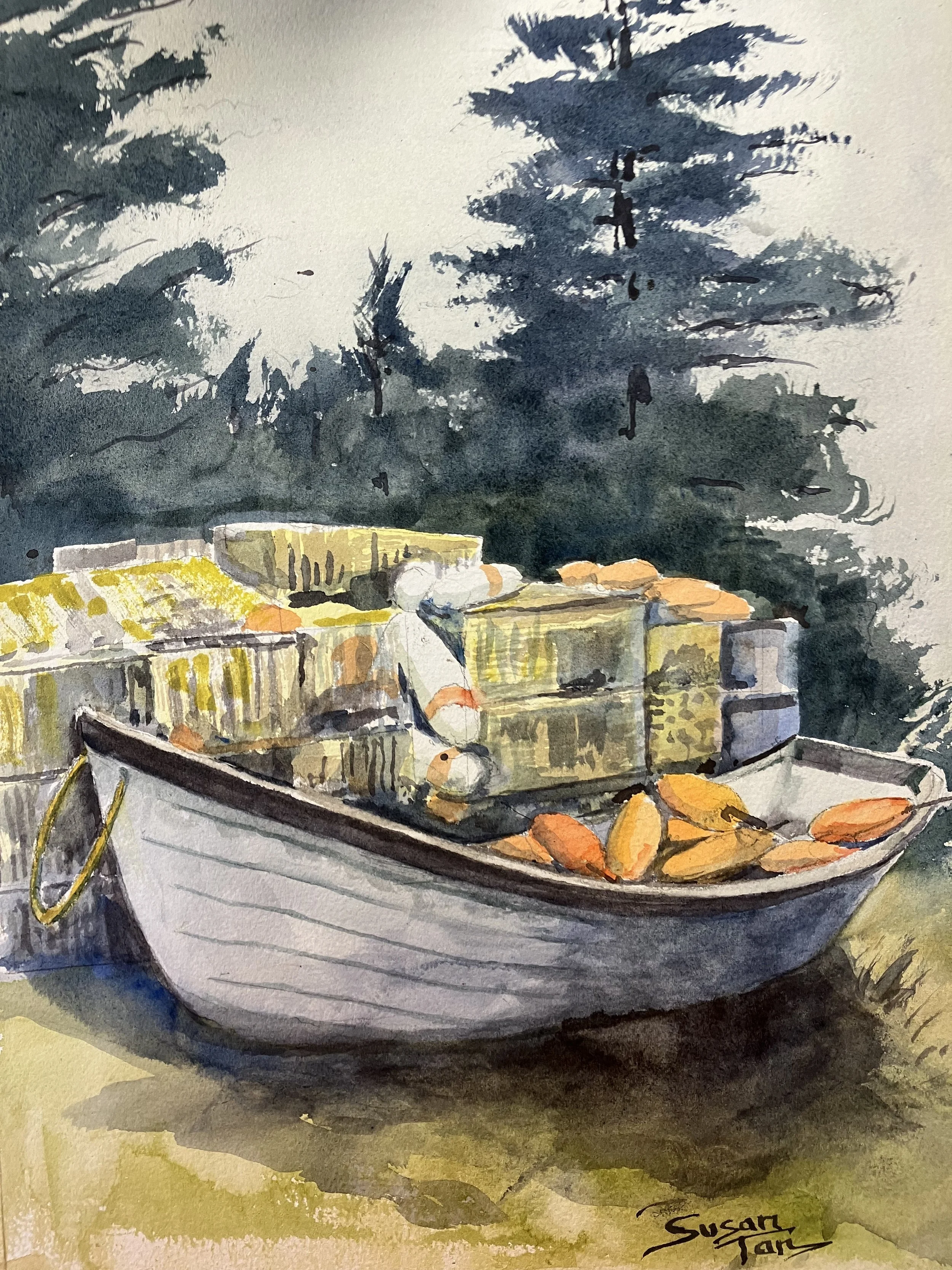 Boats, or dinghies, have been a fascination in my search for subject material. I think it’s because I learned to drive a boat before I learn to drive a car. Some of these places are, Maine, the Bahamas, South Africa, and Ireland. It’s really a universal mode of transportation wherever there is water.